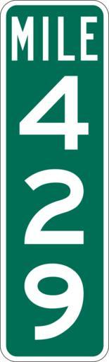 | Keywords: Mile Marker 429.svg PD MUTCD Rfc1394 457 1676 18 60 triple digit mile marker D10-3 Made using Viridian SVG Batcher this file was fabricated by a program 2009-03-05 Paul Robinson Rfc1394 Own work all rights released Public domain D10-3 - Distance Signs-3 Digit |