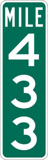 Keywords: Mile Marker 433.svg PD MUTCD Rfc1394 457 1676 18 60 triple digit mile marker D10-3 Made using Viridian SVG Batcher this file was fabricated by a program 2009-03-05 Paul Robinson Rfc1394 Own work all rights released Public domain D10-3 - Distance Signs-3 Digit |