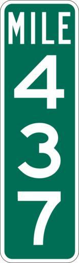 | Keywords: Mile Marker 437.svg PD MUTCD Rfc1394 457 1676 18 60 triple digit mile marker D10-3 Made using Viridian SVG Batcher this file was fabricated by a program 2009-03-05 Paul Robinson Rfc1394 Own work all rights released Public domain D10-3 - Distance Signs-3 Digit |