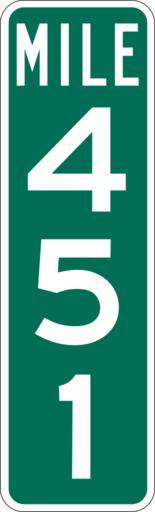 | Keywords: Mile Marker 451.svg PD MUTCD Rfc1394 457 1676 18 60 triple digit mile marker D10-3 Made using Viridian SVG Batcher this file was fabricated by a program 2009-03-05 Paul Robinson Rfc1394 Own work all rights released Public domain D10-3 - Distance Signs-3 Digit 451 number |