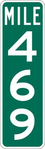 | Keywords: Mile Marker 469.svg PD MUTCD Rfc1394 457 1676 18 60 triple digit mile marker D10-3 Made using Viridian SVG Batcher this file was fabricated by a program 2009-03-05 Paul Robinson Rfc1394 Own work all rights released Public domain D10-3 - Distance Signs-3 Digit |