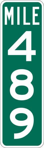 | Keywords: Mile Marker 489.svg PD MUTCD Rfc1394 457 1676 18 60 triple digit mile marker D10-3 Made using Viridian SVG Batcher this file was fabricated by a program 2009-03-05 Paul Robinson Rfc1394 Own work all rights released Public domain D10-3 - Distance Signs-3 Digit |