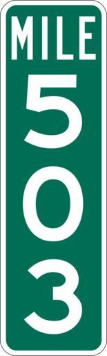 | Keywords: Mile Marker 503.svg PD MUTCD Rfc1394 457 1676 18 60 triple digit mile marker D10-3 Made using Viridian SVG Batcher this file was fabricated by a program 2009-03-05 Paul Robinson Rfc1394 Own work all rights released Public domain D10-3 - Distance Signs-3 Digit |