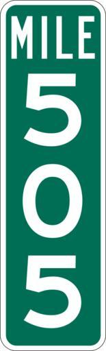 | Keywords: Mile Marker 505.svg PD MUTCD Rfc1394 457 1676 18 60 triple digit mile marker D10-3 Made using Viridian SVG Batcher this file was fabricated by a program 2009-03-05 Paul Robinson Rfc1394 Own work all rights released Public domain D10-3 - Distance Signs-3 Digit |