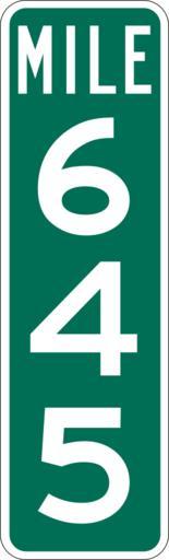 | Keywords: Mile Marker 645.svg PD MUTCD Rfc1394 457 1676 18 60 triple digit mile marker D10-3 Made using Viridian SVG Batcher this file was fabricated by a program 2009-03-05 Paul Robinson Rfc1394 Own work all rights released Public domain D10-3 - Distance Signs-3 Digit 645 number |