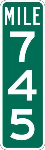 | Keywords: Mile Marker 745.svg  PD MUTCD Rfc1394 457 1676 18 60 triple digit mile marker D10-3 Made using Viridian SVG Batcher this file was fabricated by a program 2009-03-05 Paul Robinson Rfc1394 Own work all rights released Public domain D10-3 - Distance Signs-3 Digit |