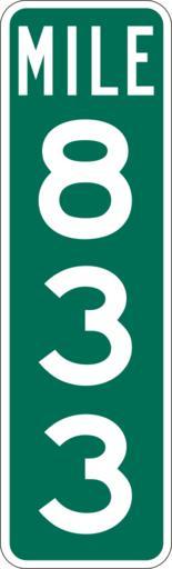 MAKE A MEME View Large Image Mile Marker 833.svg PD MUTCD Rfc1394 457 1676 18 60 triple digit mile marker D10-3 Made using Viridian SVG Batcher this file was fabricated by a program 2009-03-05 Paul Robinson Rfc1394 Own work all rights released Public domain D10-3 - ...