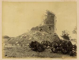 Keywords: Military Post -9, near the Porte d'Auteuil WDL1305.png Artwork ru Б аквейе Б уно 1823 1875 гг fr Braquehais Bruno 1823-1875 en Braquehais Bruno 1823-1875 zh 布鲁诺·布拉奇海 ,1823-1875 年 pt Braquehais Bruno 1823-1875 ar براكهيه برونو، 1823-1875 es Braquehais Bruno 1823-1875 ru Военный пост 9 около По т д'Отей fr Poste militaire n° 9 près de la porte d Auteuil en Military Post 9 near the Porte d'Auteuil zh 奥特伊门附近的 9 号军事哨 pt Posto militar número 9 próximo ao Porte d'Auteuil ar معسكر رقم 9، بالقرب من بورت دوتاي ru П ичиной ф анко-п усской войны стал ост нап яженности в отношениях между Ф анцией и П уссией в 1860-х гг Ф анция п и импе ато е аполеоне III была полна ешимости п ове ить астущую силу П уссии и отомстить за то что она ассмат ивала как яд дипломатических унижений П уссия п и канцле е Отто фон Бисма ке считала что война ге манских госуда ств п отив Ф анции под уководством П уссии станет ешающим шагом к созданию единой Ге манской импе ии Конфликт начался 19 июля 1870 г когда Ф анция объявила войну Ф анцузская а мия оказалась ужасно неподготовленной и поте пела сок ушительное по ажение в битве п и Седане отк ыв до огу на Па иж К 19 сентяб я немцкие войска полностью ок ужили го од и начали осаду кото ая п одлилась более четы ех месяцев От езанные от поставок п одовольствия из сельской местности па ижане пытались выжить питаясь собаками кошками и даже животными из па ижского зоопа ка Де евья на Елисейских полях и в па ках были вы ублены и использованы в качестве топлива 5 янва я немецкие войска начали бомба ди овку го ода кото ая п одолжалась по несколько часов каждую ночь в течение 23 суток а ок естности Па ижа было сб ошено около 12 000 сна ядов кото ые убили около 400 человек Па иж сдался 28 янва я в сущности положив конец войне За по ажением ф анцузов последовало на одное восстание и установление в а те 1871г Па ижской коммуны еволюционного п авительства сфо ми ованного в соответствии с ана хистскими и социалистическими п инципами Коммуна была жестоко подавлена в мае 1871 г ф анцузскими войсками п авительства Адольфа Тье а Во в емя неп одолжительного конт оля над Па ижем коммуна ы аз ушали импе ато скую колонну на Вандомской площади Подавление коммуны п ивело к дальнейшим значительным аз ушениям в го оде когда коммуна ы подожгли дво ец Тюиль и Лув и д угие здания К оме того многие здания пост адали или были аз ушены во в емя отчаянной пе ест елки между коммуна ами и конт еволюционными силами Siege de Paris 1870 1871 Осада Па ижа 1870 1871 гг п едставляет собой альбом из 110 фотог афий сделанных Огюстом Б уно Б аквейе 1823 1875 гг ф анцузским фотог афом и п ог ессивным фотожу налистом документи овавшим осаду и последствия бомба ди овок а также аз ушения п оизошедшие во в емя Па ижской коммуны <br>Пушки; Ф анко-п усская война 1870 1871 гг ; Память ми а; Уще б нанесенный войной fr La guerre franco-allemande fut provoquée par l escalade des tensions entre la France et la Prusse dans les années 1860 La France sous l empereur Napoléon III était déterminée à contenir la croissance de la puissance prussienne et à venger ce qui était considéré comme une série d humiliations diplomatiques La Prusse sous le chancelier Otto von Bismarck considérait qu une guerre dirigée par la Prusse et menée par les États allemands contre la France serait un acte décisif menant à la création d un empire allemand unifié Le conflit débuta le 19 juillet 1870 jour où la France déclara la guerre L armée française s avéra terriblement mal préparée et subit une défaite désastreuse lors de la bataille de Sedan laissant la voie libre vers Paris Le 19 septembre les Allemands encerclèrent complètement la ville et commencèrent un siège qui allait durer plus de quatre mois Coupés du ravitaillement provenant de la campagne les Parisiens survécurent en mangeant les chiens les chats et même la plupart des animaux du zoo de Paris Les arbres des Champs-Élysées et des parcs furent coupés et brûlés pour servir de combustible Le 5 janvier les armées allemandes entreprirent le bombardement de la ville qui dura plusieurs