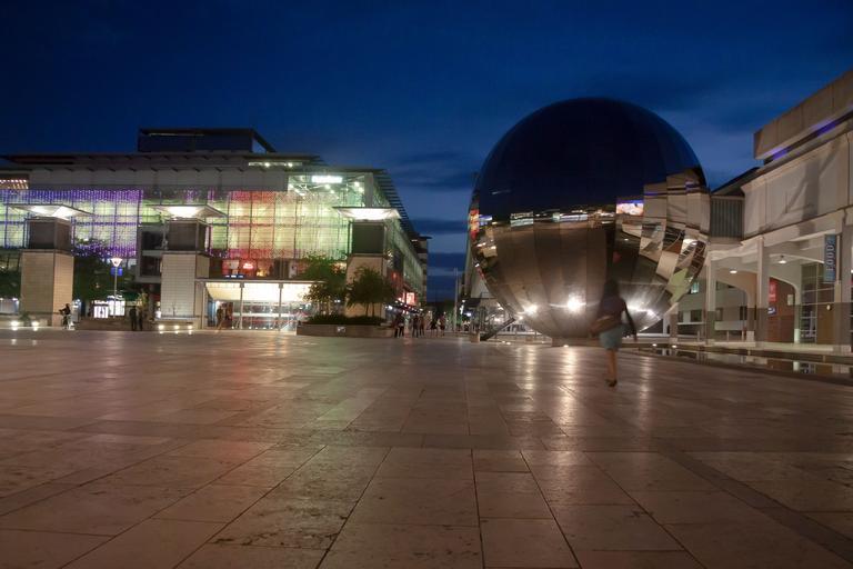 MAKE A MEME View Large Image millenium space bristol england planetarium glass aluminium mirror shiny metal architecture reflection ball homes urban evening night dark blue mirroring paving stones facade lighting colorful art modern