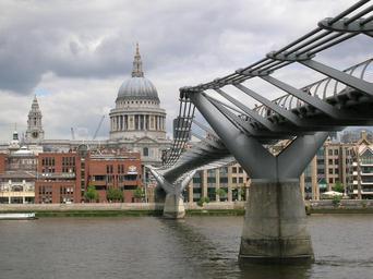 Keywords: london millennium dome uk embankment destination cathedral steel river travel business urban landmark walking st saint s pedestrian old traditional crossing building modern sightseeing church britain wharf famous