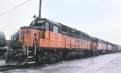 Keywords: MILW 2067 , a GP40 built Dec. 1986 in Bensenville, Illinois Yards in March 1985 (29660303062).jpg en 1 of 14 Milwaukee Road roster type photos uploaded today <br> <b>A Roger Puta Photograph</b> 2016-09-18 13 20 09 https //www flickr com/people/129679309 N05 railfan 44 https //www flickr com/photos/129679309 N05/29660303062/ User Fæ/Flickr API Puta's Midwestern Railroad Photographs Chicago Rails EMD Northwest Indiana and Chicagoland railfans Railfanning the Chicagoland Suburbs Classic EMD Power EMD Gallery Railroading in Illinois Chicago Area Railfans Milwaukee Road Mel Finzer RogerPuta Photographs by Roger Puta Photos uploaded from Flickr by Fæ using a script Chicago Milwaukee St Paul and Pacific Railroad 1985 in rail transport in the United States |