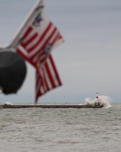 | Keywords: Milwaukee Harbor during Hurricane Sandy DVIDS1125830.jpg en MILWAUKEE HARBOR - The national ensign and Coast Guard ensign on a Coast Guard Station Milwaukee 45-foot Response Boat-Medium wave in the wind as the boatcrew remains ashore due to seas and winds beyond the RB-M's operating limits at the Milwaukee Harbor south gap entrance Oct 30 2012 The wind and waves 12-18 feet high impacted the Great Lakes region as part of a weather system associated with Superstorm Sandy U S Coast Guard photo by Lt j g Brian DykensA Coast Guard Station Milwaukee rescue boatcrew conducts training on its 45-foot Response Boat-Medium near the entrance to Milwaukee Harbor in Lake Michigan Oct 30 2012 The boatcrew was underway before storm conditions related to Hurricane Sandy fully impacted the Great Lakes bringing on a sea state beyond the RB-M's operating limits U S Coast Guard photo by Bruce Nason 2012-10-30 https //www dvidshub net/image/1125830 1125830 2013-12-13 04 07 MILWAUKEE HARBOR WI US PD-USGov Coast Guard Station Milwaukee Lake Michigan Images from DoD uploaded by Fæ Hurricane Sandy |