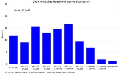 Keywords: Milwaukee household income distribution.svg translate yes en Distribution of household income in Milwaukee Michigan Data from http //factfinder census gov/bkmk/table/1 0/en/ACS/14_5YR/DP03/1600000US5553000 US Census in 2014 inflation adjusted dollars 2016-06-02 own Delphi234 other versions cc-zero Income distribution in the United States Milwaukee Wisconsin |