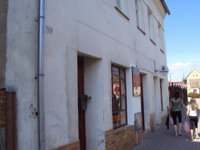 Keywords: Mimoň Mírová 59B.JPG cs Budova v Mírové ulici s česko-německou tabulí v dohledu náměstí 1 máje own Zákupák 2012-08-23 Mírová Mimoň