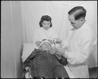 | Keywords: Minidoka Relocation Center. Doctor Robert H. Shiomi, Miyoko Shitamae, nurse, Jimmie Shimizu, patien . . . - NARA - 536596.tif Scope and content The full caption for this photograph reads Minidoka Relocation Center Doctor Robert H Shiomi Miyoko Shitamae nurse Jimmie Shimizu patient Hospital Series Scene in out patients clinic where Jimmie had an injured thumb repaired General notes 536596 Local identifier 210-G-A792 Department of the Interior War Relocation Authority 02/16/1944 - 06/30/1946 NARA-Author Stewart Francis War Relocation Authority photographer Photographer 8464475 <br /> Still Picture Records Section Special Media Archives Services Division NWCS-S National Archives at College Park 8601 Adelphi Road College Park MD 20740-6001 1942-12-10 Record group Record Group 210 Records of the War Relocation Authority 1941 - 1989 Record group ARC 537 Central Photographic File of the War Relocation Authority compiled 1942 - 1945 Series ARC 536000 File unit File unit ARC Variant control numbers NAIL Control Number NWDNS-210-G-A792 yes Other versions <gallery> File Minidoka_Relocation_Center _Doctor_Robert_H _Shiomi _Miyoko_Shitamae _nurse _Jimmie_Shimizu _patien_ _ _ _-_NARA_-_536596 tif tif File Minidoka_Relocation_Center _Doctor_Robert_H _Shiomi _Miyoko_Shitamae _nurse _Jimmie_Shimizu _patien_ _ _ _-_NARA_-_536596 jpg jpg </gallery> NARA-cooperation PD-USGov Minidoka National Historic Site NARA TIF images with categorized JPGs |