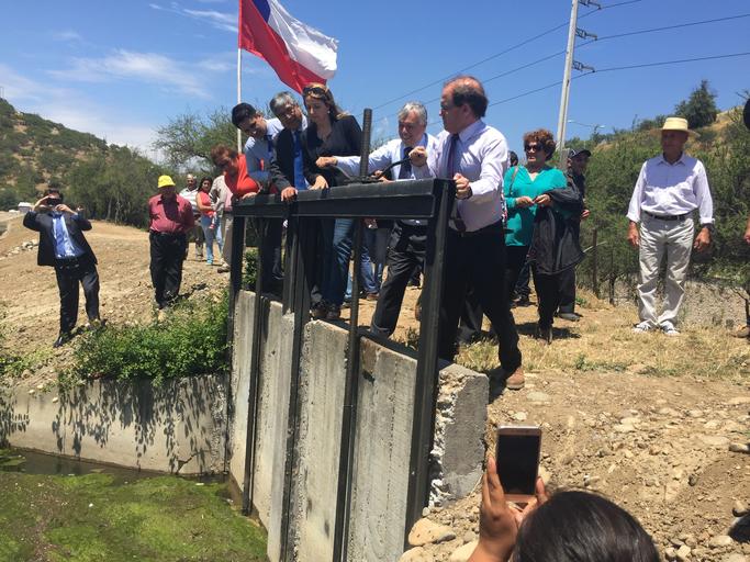 Keywords: outdoor Paine, jueves 24 de noviembre de 2016.- El Ministro de Obras Públicas, Alberto Undurraga, y el Ministro de Agricultura, Carlos Furche, encabezaron hoy la ceremonia de inauguración del nuevo Embalse de Riego Hospital en la comuna de Paine, obra que forma parte del Plan Nacional de Construcción y Rehabilitación Pequeños Embalses del Ministerio de Obras Públicas. El Ministro Alberto Undurraga destacó que “estas obras son muy importantes por su funcionalidad para dar un mejor uso al agua y también para mejorar la calidad de vida y oportunidades de desarrollo de los habitantes de la comuna de Paine”. “Estamos haciendo otros 24 pequeños embalses como este en distintos lugares de nuestro país y dejaremos otros 8 grandes embalses en licitación o construcción, con ello durante el Gobierno de la Presidenta Bachelet, estaremos construyendo más infraestructura para el agua que nunca en la historia de Chile”, explicó el Secretario de Estado. Por su parte, el Ministro de Agricultura, Carlos Furche, manifestó que "esto es muy importante para quienes son beneficiarios directos, más de 1.000 pequeños productores que van a aumentar su capacidad productiva, de frutas y hortalizas que abastecen además a la región Metropolitana". Además, el titular del Agro agregó que esto tiene una importancia que va un poco más allá de haber cumplido a tiempo un compromiso que tomaron hace un año con los dirigentes de esta comunidad, porque permite mostrar que es posible avanzar simultáneamente en la entrega de obras como estas y en la modificación del marco regulatorio. "Ambas cosas se pueden hacer en simultáneo y es lo que estamos haciendo. De manera que esto es una buena noticia para los productores y es un ejemplo de lo que estamos haciendo en todo Chile. Tranques como estos estamos entregando casi todos los meses a lo largo del país", explicó. En la oportunidad, la Secretaria Ejecutiva de la Comisión Nacional de Riego (CNR), María Loreto Mery, destacó que “en materia de planificación del riego estamos trabajando muy de la mano con el Ministro de Obras Públicas, ya que estamos viendo las distintas necesidades multipropósito del recurso hídrico. Algunos de los embalses que estamos rehabilitando no son sólo para riego, sino también para agua potable rural o contribuir ante hechos de emergencia como un incendio forestal”. El nuevo Embalse Hospital permitirá entregar una capacidad de almacenamiento de 200.000 m3, que permitirán a 1.200 pequeños agricultores el riego de más de 2.000 hectáreas de terrenos, principalmente cultivos de frutas y verduras. Las obras, que fueron ejecutadas por el Ministerio de Obras Públicas, a través de su Dirección de Obras Hidráulicas, representaron una inversión de 484 millones de pesos, destacando el retiro de 70.000 m3 de sedimento, el revestimiento en hormigón de 300 metros del canal alimentador que trae las aguas del Río Angostura, el recambio de las 6 compuertas, la construcción de un desarenador y un vertedero para evacuación de crecidas. El Plan de Construcción y Rehabilitación Pequeños Embalses contempla la intervención de 25 embalses, de ellos 8 rehabilitaciones se encuentran terminadas, se trata de los embalses Chada y Hospital en Paine; Los Molles de Melipilla; Santa Rosa en Limache; El Principal de Pirque; Rautén Bajo en Quillota; Santa Julieta y Concepción en Ovalle. Además, de otros 2 en ejecución: Huechún en Melipilla y San Antonio en Ovalle. En paralelo, se encuentra en construcción el Embalse Empedrado en la Región del Maule y en estudio 24 sitios, entre las regiones de Coquimbo y La Araucanía, para construir nuevos pequeños embalses. Durante la ceremonia de inauguración del nuevo Embalse Hospital también participaron el Director General de Aguas, Carlos Estévez; el Director Nacional de Obras Hidráulicas, Reinaldo Fuentealba; la Secretaria Ejecutiva de la CNR, Loreto Mery; el Gobernador de la Provincia del Maipo, Felipe Jeldres y el Presidente de la Comunidad de Aguas del Canal Hospital, Víctor Catalán. Paine, jueves 24 de noviembre de 2016.- El Ministro de Obras Públicas, Alberto Undurraga, y el Ministro de Agricultura, Carlos Furche, encabezaron hoy la ceremonia de inauguración del nuevo Embalse de Riego Hospital en la comuna de Paine, obra que forma parte del Plan Nacional de Construcción y Rehabilitación Pequeños Embalses del Ministerio de Obras Públicas. El Ministro Alberto Undurraga destacó que “estas obras son muy importantes por su funcionalidad para dar un mejor uso al agua y también para mejorar la calidad de vida y oportunidades de desarrollo de los habitantes de la comuna de Paine”. “Estamos haciendo otros 24 pequeños embalses como este en distintos lugares de nuestro país y dejaremos otros 8 grandes embalses en licitación o construcción, con ello durante el Gobierno de la Presidenta Bachelet, estaremos construyendo más infraestructura para el agua que nunca en la historia de Chile”, explicó el Secretario de Estado. Por su parte, el Ministro de Agricultura, Carlos Furche, manifestó que "esto es muy importante para quienes son beneficiarios directos, más de 1.000 pequeños productores que van a aumentar su capacidad productiva, de frutas y hortalizas que abastecen además a la región Metropolitana". Además, el titular del Agro agregó que esto tiene una importancia que va un poco más allá de haber cumplido a tiempo un compromiso que tomaron hace un año con los dirigentes de esta comunidad, porque permite mostrar que es posible avanzar simultáneamente en la entrega de obras como estas y en la modificación del marco regulatorio. "Ambas cosas se pueden hacer en simultáneo y es lo que estamos haciendo. De manera que esto es una buena noticia para los productores y es un ejemplo de lo que estamos haciendo en todo Chile. Tranques como estos estamos entregando casi todos los meses a lo largo del país", explicó. En la oportunidad, la Secreta