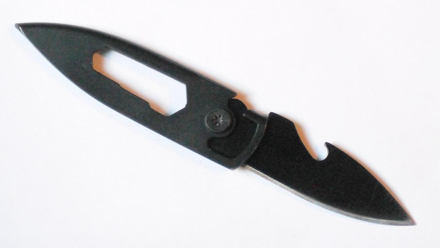 Keywords: MiniUtility5.JPG en The Promithi mini utility pocket knife Made in China from 2 pieces of metal connected by a torx nut and bolt the multitool has a 5cm blade a bottle-opener and a spanner-hole own Simon Speed 2016-02-15 Promithi mini utility pocket knife Photos by Simon Speed Taken with Fujifilm FinePix J25 Cc-zero |