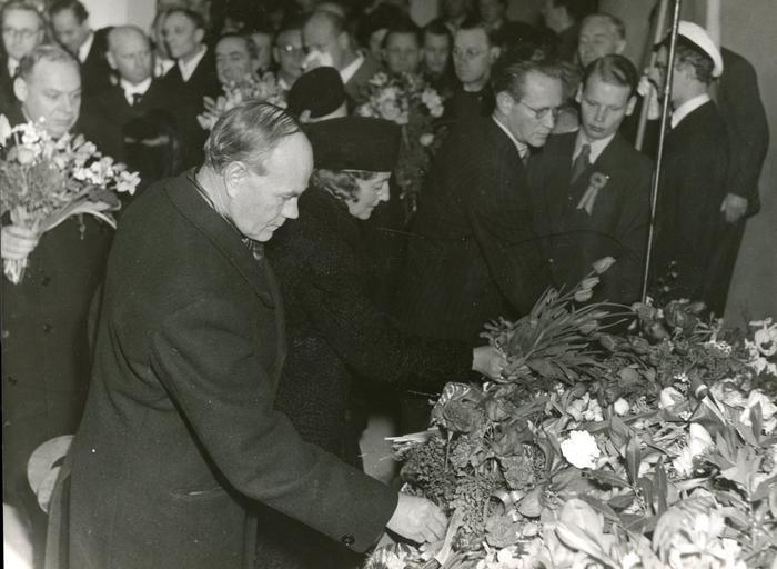 | Keywords: vårslipp vårslipp 2012 vårslipp2012 minnehøytideligheter andre verdenskrig andreverdenskrig 2. verdenskrig 2verdenskrig nordmenn i sverige under krigen nordmennisverigeunderkrigen people groupshot Svensk-norske foreningen arrangerte om morgenen 9. April 1943 en minnehøytidelighet i Thulehuset for de norske patrioter som ofret sine liv for Norges frihet.Bildet viser ordförande i LO August Lindberg idet han legger ned en krans ved minnetavlen. RA/PA-1209/Uc/66/4/L 6638/S 1906 Svensk-norske foreningen arrangerte om morgenen 9. April 1943 en minnehøytidelighet i Thulehuset for de norske patrioter som ofret sine liv for Norges frihet.Bildet viser ordförande i LO August Lindberg idet han legger ned en krans ved minnetavlen. RA/PA-1209/Uc/66/4/L 6638/S 1906 |