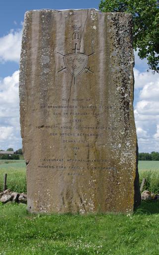 Keywords: Minnessten (rest 1896) över Slaget vid Åsle (1389).jpg en Memorial over The Battle of Åsle in 1389 The memorial was erected in 1896 by Västergötlands fornminnesförening in Åsle village and parish in Vartofta hundred in Västergötland and Falköping municipality in Västra Götalands län Sweden sv Minnessten över sv slaget vid Åsle år 1389 Stenen restes av Västergötlands fornminnesförening år 1896 vis sv Åsle kyrka i kyrkbyn sv Åsle i Vartofta härad Västergötland och i Falköpings kommun i Västra Götalands län 10210400150001 RAÄ-nr Åsle 15 1 own Nasko 2011-07-10 58 1802 13 6855 heading N Åsle socken Västergötland Memorial stones in Falköping Municipality July 2011 in Sweden |