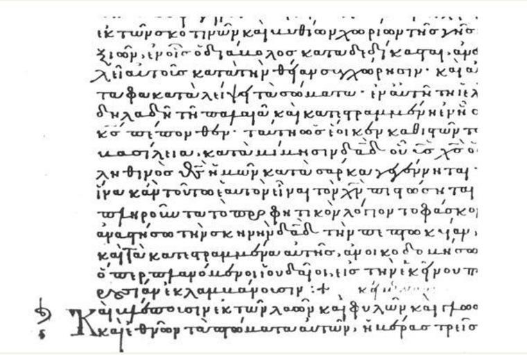Keywords: Minuscule 2060 (Ap 11,7-8.9).JPG en fragment of the codex with text of Rev 11 7-8 9 Minuscule 2060 Gregory-Aland Author 1331 C E PD-old-100 B M Metzger Manuscripts of the Greek Bible NY Oxford 1981 132-133 Greek New Testament minuscules 14th-century manuscripts |