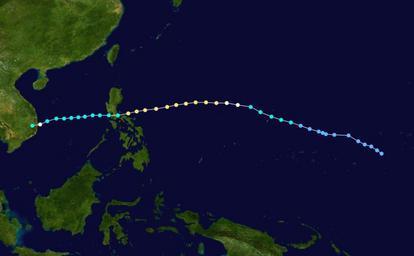 | Keywords: Mirinae 2009 track.png Track map of Typhoon Mirinae of the 2009 Pacific typhoon season The points show the location of the storm at 6-hour intervals The colour represents the storm's maximum sustained wind speeds as classified in the Saffir-Simpson Hurricane Scale see below and the shape of the data points represent the nature of the storm according to the legend below User Nilfanion/Tc/T Created by Cyclonebiskit using Wikipedia WikiProject Tropical cyclones/Tracks The background image is from NASA Tracking data switch source from the National Hurricane Center <sup>http //www nhc noaa gov/pastall shtml</sup> from the Central Pacific Hurricane Center <sup>http //www prh noaa gov/cphc/summaries/</sup> from the Joint Typhoon Warning Center <sup>https //metocph nmci navy mil/jtwc/best_tracks/</sup> from the Japan Meteorological Agency <sup>http //www jma go jp/jma/jma-eng/jma-center/rsmc-hp-pub-eg/besttrack html</sup> from the National Hurricane Center <sup>http //www nhc noaa gov/pastall shtml and the Central Pacific Hurricane Center http //www prh noaa gov/cphc/summaries/</sup> from the Central Pacific Hurricane Center <sup>http //www prh noaa gov/cphc/summaries/ and the Joint Typhoon Warning Center https //metocph nmci navy mil/jtwc/best_tracks/</sup> from the w National Hurricane Center <sup>http //www nhc noaa gov/pastall shtml</sup> or the Joint Typhoon Warning Center <sup>https //metocph nmci navy mil/jtwc/best_tracks/</sup> 2009-10-28 Cyclonebiskit Typhoon Mirinae 2009 2009 Pacific typhoon season track maps |