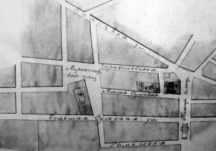 | Keywords: Mironositska07.jpg en Fragment of old Kharkov map ru Ф агмент ка ты Ха ькова начала XX на кото ом обозначена и оносицкая це ковь А Ф Па амонов П авославные х амы Ха ьковской губе нии 1681-1917 гг Альбом-каталог - Ха ьков Ха ьковский частный музей го одской усадьбы ISBN 978-966-8246-73-9 author early XX century PD-old Mironositska church in Kharkiv |