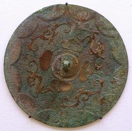 | Keywords: Mirror, China, Eastern Zhou dynasty, Warring States period, 480-222 BC, bronze - Ethnological Museum, Berlin - DSC02147.JPG en Exhibit in the Ethnological Museum Berlin Germany Photography was permitted in the museum without restriction 2014-11-11 11 11 04 own Daderot other versions cc-zero Bronze mirrors of China in the Ethnological Museum Berlin Uploaded with UploadWizard | ||||
