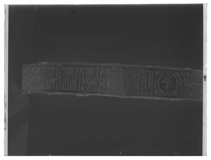 | Keywords: Mitra för dignitär inom den ryska ortodoxa kyrkan - Livrustkammaren - 79407-negative.tif LSH artwork sv Krigsbyge från Narva Mitra av hattformig modell med cylindrisk kulle med svagt rundad kant Vulstformigt brätte b ca 30 mm klätt med pergament ursprungligen med skinn Kullen klädd med delvis mycket slitet karminrött siden nertill vid brättet ring av förgylld silverplåt b 30 mm med graverad gammalslavisk text översättning se Bodin År 7 159 november 17 dagen gav statssekreteraren Michail Danilovs hustru änkan Uljana dotter till Vasilij denna biskopsmössa till Tjudovklostret till den undergörande Aleksijs hem till minne av sin make Michail Danilovitj eremitmunken Misail och sin dotter Ksenia för sin själDärovanför en krans med sex ursprungligen nio helgonbilder graverade på rektangulära plåtar med trepassformig överdel mellersta bågen spetsig h 83 mm b 58 mm gammalslaviska texter 1 - ett manligt helgon med otydlig text pete ; 2 - ärkeängeln Gabriel achange gabri ; 3 - Maria mrthy mätär Theo - Guds moder ; 4 - ärkeängeln Mikael achage michail ; 5 - evengelisten Petrus apoto petr ; 6 - helgon i biskopsdräkt st alekse miro På kullens översida en krans med nio runda plåtar med serafer och keruber fyra stycken med text serafim fem med cherubi Mitt på kullen en stor rund plåt d 102 5 mm med Maria och Jesusbarnet text mrthy Guds Moder Runt plåtarna broderier med silke silvertråd och -paljetter två ovala genomborrade glaspärlor bevarade Hatten invändigt stoppad och klädd med blekrött siden original caption Slaget vid Narva 1650 silver - silk Färg röd karminröd material siden - parchment size mm 195 kulle size mm 265 bräm g 6145 size mm 150 ca LRK Karl XII av Sverige Mille ans de tradition chret 1988-1989 Kungens lockpipa 1995-1996 Karl XII och Peter den store Peter den store och Karl XII - i krig och fred 1998-1999 Livrustkammaren Krigsbyte 2007-2008 300-årsminnet av slaget vid Poltava / Poltava 300 Years Eremitaget och Kreml-museet 2009-2010 Livrustkammaren nya basutställning 2018 LRK bas 2018 Livrustkammaren apoto Petr S t Petrus Per achage michail Mikael st alekse miro S t Alexej Miro mrthy Mätär Theou - Guds Moder Maria achange gabri Gabriel place of origin original filename LN_E02385 42045 inventory number LRK 5388 79407 CC0 Mitra för dignitär inom den ryska ortodoxa kyrkan - Livrustkammaren - 79407 tif <gallery caption Different images of same object > File Mitra Tchudov-klostret - Livrustkammaren - 38923 tif File Mitra för dignitär inom den ryska ortodoxa kyrkan - Livrustkammaren - 10922 tif File Mitra för dignitär inom den ryska ortodoxa kyrkan - Livrustkammaren - 2362 tif File Rysk-ortodox mitra från 1650 - Livrustkammaren - 47481 tif File Mitra för dignitär inom den ryska ortodoxa kyrkan - Livrustkammaren - 53725 tif File Mitra ovanifrån - Livrustkammaren - 18355 tif File Mitra för dignitär inom den ryska ortodoxa kyrkan - Livrustkammaren - 62286 tif File Mitra för dignitär inom den ryska ortodoxa kyrkan - Livrustkammaren - 70848 tif File Helbild mitra - Livrustkammaren - 9793 tif </gallery> <gallery caption Related objects > File Mässkåpa - Livrustkammaren - 68556 tif LRK 19520 File Rysk mässkåpa - Livrustkammaren - 5042 tif LRK 19520 File Mässkåpa rysk detalj - Livrustkammaren - 25085 tif LRK 19520 File Mässkåpa rysk detalj - Livrustkammaren - 16523 tif LRK 19520 File Rysk mässkåpa - Livrustkammaren - 35643 tif LRK 19520 File Rysk mässkåpa - Livrustkammaren - 231 tif LRK 19520 File Rysk patriarksköld - Livrustkammaren - 26429 tif LRK 19521 File Rysk mässkåpa - Livrustkammaren - 77275 tif LRK 19520 </gallery> |