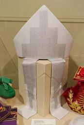 | Keywords: Mitre worn by Pope John Paul II to celebrate Mass at Candlestick Park on Sept 18, 1987, fabric with silk thread - Saint Ignatius Church, San Francisco, CA - DSC02600.JPG en Exhibit in Saint Ignatius Church San Francisco California USA Photography was permitted without restriction 2015-05-14 16 59 04 own Daderot other versions cc-zero Exhibits in Saint Ignatius Church San Francisco Uploaded with UploadWizard Ioannes Paulus II in 1987 Relics of Ioannes Paulus II | ||||