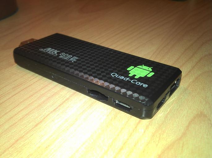 | Keywords: MK809III V1.0 130606 connectors.jpg en Originally produced as an Android Mini-PC TV-Stick there is a range of Operating Systems to run on RK3188 ARM SoC devices such as this one Despite the Android logo on the outside it also runs other Linux distributions The specific model name found on the board inside is MK809III V1 0 This device was built in the 25th week of 2013 and the PCB revision dates 2013-06-06 Its characteristics are Rockchip RK3188 ARMv7 SoC GEIL 2GB DDR3 RAM memory SK hynix 8GB NAND memory Active ACT8846 Voltage Regulator Broadcom AP6210 WIFI/BT Combo ITE IT66121 HDMI chip Blue LED power on customizable from left to right in picture 1 recovery button paper clip hole on the side 1 µSDHC card reader 1 USB2 0 OTG micro size connector for peripheral or nand flash see below 1 USB2 0 micro size connector for 5V 2A power connect in normal usage 1 USB2 0 HOST full size connector for peripheral to flash the device unplug every port of the device use a paper clip to push the recovery button and hold connect OTG port ONLY to a PC wait a couple of seconds release recovery button flash using your favorite software The device is very similar to Rikomagic MK802 IV or Radxa Rock devices up to the extent that firmwares are interchangable They are all built around the same RK3188 ARMv7 SoC The Kernel can be customized by the end user as leaked Rockchip Kernel sources versioned 3 0 36 may be found on Github Some work is in progress to integrate support into mainline kernel tree For more info see http //linux-rockchip info/mw/index php title RK3188 2014-04-15 04 41 13 own Cmuelle8 cc-zero Uploaded with UploadWizard MK809III |
