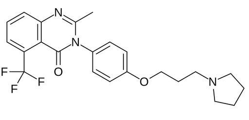 Keywords: MK-0249.svg Chemical structure of MK-0249 Own 17 27 25 November 2013 UTC Ed Edgar181 Trifluoromethyl compounds Azolidines Quinazolinones