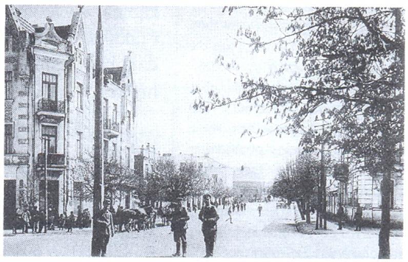 | Keywords: Mława ulica Nowa.jpg Mława widok na ulice Nową obecnie 3 Maja od strony parku na pierwszym planie żołnierze rosyjscy Zdjęcie sprzed I Wojny Światowej skan wykonał Czonek 15 05 29 December 2006 UTC z kopii znajdującej się w zbiorach prywatnych 2006-12-29 PD-old Mława |
