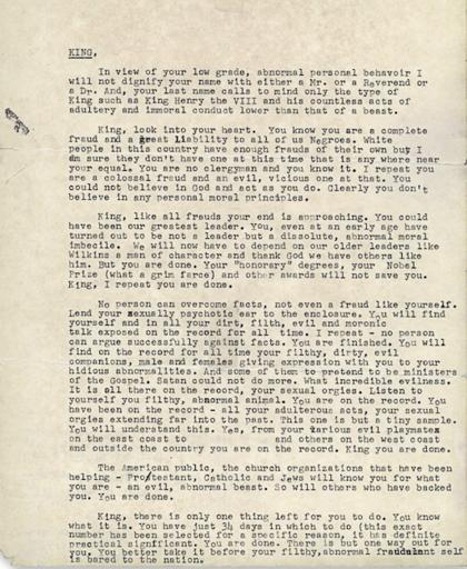 | Keywords: Mlk-uncovered-letter.png en A letter sent anonymously by the FBI to Martin Luther King Jr in 1964 This is a higher resolution unredacted version of File Mlk-suicide-letter JPG de Ein anonymer Brief von dem FBI an Martin Luther King Jr aus dem Jahr 1964 Diese Datei ist eine ungeschwärzte Version von File Mlk-suicide-letter JPG 1964 https //www eff org/deeplinks/2014/11/fbis-suicide-letter-dr-martin-luther-king-jr-and-dangers-unchecked-surveillance FBI other versions PD-USGov Uploaded with UploadWizard Federal Bureau of Investigation COINTELPRO Martin Luther King Jr Surveillance in the United States |
