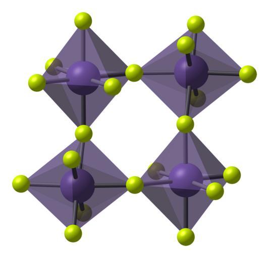 | Keywords: Mn4F20-ring-from-alpha-MnF4-xtal-1987-CM-3D-polyhedra.png Polyhedral model of an Mn<sub>4</sub>F<sub>20</sub> ring in the crystal structure of -manganese IV fluoride MnF<sub>4</sub> Colour code 9c7bc6 Manganese Mn light purple d4f03f Fluorine F yellow-green Structure determined by X-ray crystallography reported in Z Naturforsch B 1987 42 1102 “1106 ICSD 62069 Model manipulated and image generated in http //www crystalmaker com/ CrystalMaker 8 6 Own 2012-07-22 Ben Mills Benjah-bmm27 Images by Ben Mills Manganese IV fluoride |