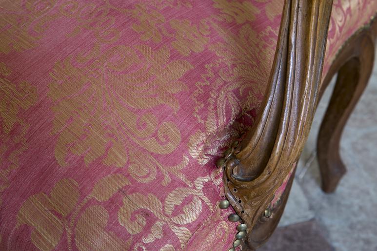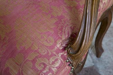 | Keywords: Möbeltyg, 1840 cirka - Skoklosters slott - 103899.tif LSH artwork H Amand möbelsnickare sv Svängda ben med käl och bandomlindade vulstknippen som direkt övergår i sargen på samma sätt dekorerad ram till stoppad konturerad rygg Mitt på sargens framsida och på ryggens överstycke skulpterade rosor och rocailler <br/>Utåtsvängda armstöd med stoppning Sits och rygg samt armstödens stoppning klädda med rött-gulmönstrat fibertyg bomull och obearbetad fiber av manillahampa <br/>Klädseln spikad med mässingstännlikor <br/>Omkring 1700-talets mitt <br/>Tygklädseln från ca 1840 <br/>Stämplade på ena ryggstolpens baksida ME H AMAND menusier ebeniste Paris <br/>Märkta <br/>1775 1 På sargens bakre insida J med blyerts <br/>1775 2 På sargens främre insida I samt oläslig skrift med blyerts på vänstra och högra insidan xe <br/>1775 3 Märkt s 1775 2 men Ret på vänstra insidan <br/>1775 4 På sargens främre insida I på dess vänstra insida + med blyerts På sidornas insida inristat romb <br/>1775 5 På sargens främre insida I med blyerts <br/>1775 6 På sargens främre insida x med svart färg tre ggr På sidornas insida 3 med blyerts På bakre insidan L original caption Möbeltyg 1840 cirka <br/> Nyckelord Textilier Möbeltyg Föremålsbild Stol Mönster ca 1750 size mm 760 700 1020 SKO M E place of origin original filename sm_dig11817 23029 inventory number SKO 1775 103899 CC-BY-SA Jenny Bergensten <gallery caption Different images of same object > File Undersidan av stol - Skoklosters slott - 103893 tif File Fåtölj - Skoklosters slott - 103909 tif File Fåtölj 1750 cirka - Skoklosters slott - 103912 tif File Länstol 1750 cirka - Skoklosters slott - 103891 tif File Fåtölj undersidan 1750 cirka - Skoklosters slott - 103913 tif File Fåtölj - Skoklosters slott - 103910 tif File Undersidan av stol - Skoklosters slott - 103896 tif File Möbeltyg 1840 cirka - Skoklosters slott - 103898 tif File Undersidan av sits - Skoklosters slott - 103917 tif File Länstol - Skoklosters slott - 103890 tif File Undersidan av stol - Skoklosters slott - 103897 tif File Länstol - Skoklosters slott - 103888 tif File Fåtölj undersidan - Skoklosters slott - 103915 tif File Undersidan av stol - Skoklosters slott - 103895 tif File Länstol - Skoklosters slott - 103889 tif File Fåtölj från sidan 1750 cirka - Skoklosters slott - 103911 tif File Stol med randigt möbelöverdrag - Skoklosters slott - 98198 tif File Underdel av länstol 1750 cirka - Skoklosters slott - 103892 tif File Undersidan av stol - Skoklosters slott - 103894 tif File Fåtölj undersidan - Skoklosters slott - 103916 tif File Valnötsstol med mönstrat fibertyg bomull och obearbetad fiber av manillahampa från 1750 - Skoklosters slott - 98199 tif File Fåtölj undersidan 1750 cirka - Skoklosters slott - 103914 tif </gallery> Chairs Patterns Upholstery Textiles Jenny Bergensten Media contributed by LSH unmatched creator Media contributed by LSH 2015-11 |