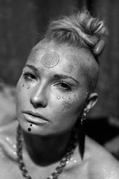 Keywords: model glitter face paint scandinavian woman makeup portrait party