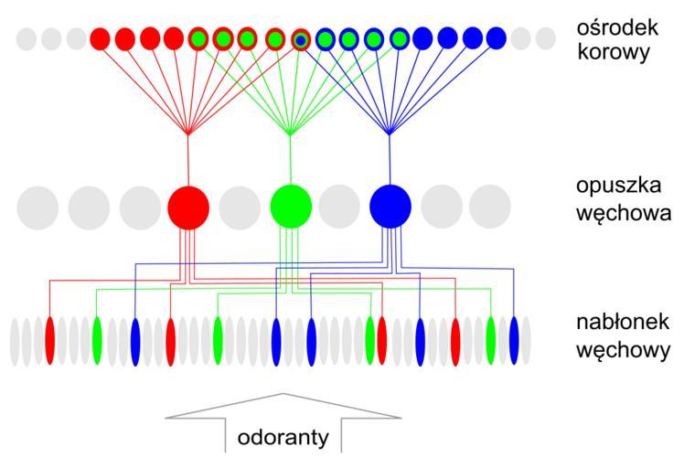 Keywords: Model smell recogn.svg en Model Inputs from different olfactory receptors ORs are combined In single cortical neurons ref Linda B Buck Nobel lecture pl Model Wejścia z różnych receptorów węchowych są łączone w pojedynczych neuronach korowych ref Linda B Buck Nobel lecture own Joanna Kośmider 2011-06-03 Smell system |