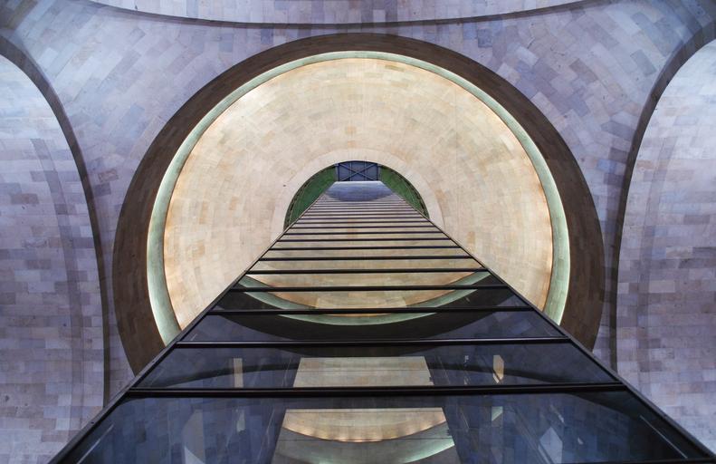 Keywords: modern elevator lift glass dome cupola architecture building contemporary interior up photography perspective