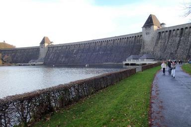 Keywords: möhne damm möhnedamm mohne dam mohnedam arnsberg sauerland möhne katastrophe möhnekatastrophe mohne flooding mohneflooding outdoor architecture This is a picture of the Möhnsee Dam near Arnsberg, originally completed in 1913, holding up to 134.5 million cubic metres of water, and its regulating lake underneath. It has a sad history. On the night of 17 May 1943 an RAF squadron released a specially developed “bouncing bomb”, causing catastrophic flooding. More than 1,300 people died: children, women and men, including forced labourers from Ukraine, Poland and Russia, who were ghettoized in camps in the Möhne Valley, as well as civilians from France, Belgium and the Netherlands. Reconstruction of the Möhne Dam started the same month, using forced labourers and prisoners of war in day and night shifts, suffering from malnutrition and insufficient safety, leading to severe accidents and deaths. The Allied Forces aim had been to interrupt the water supply for the Ruhr Valley, though German armaments production was never much affected by the many death caused here. A memorial - as a symbol of peace - was inaugurated here in 2015. This is a picture of the Möhnsee Dam near Arnsberg, originally completed in 1913, holding up to 134.5 million cubic metres of water, and its regulating lake underneath. It has a sad history. On the night of 17 May 1943 an RAF squadron released a specially developed “bouncing bomb”, causing catastrophic flooding. More than 1,300 people died: children, women and men, including forced labourers from Ukraine, Poland and Russia, who were ghettoized in camps in the Möhne Valley, as well as civilians from France, Belgium and the Netherlands. Reconstruction of the Möhne Dam started the same month, using forced labourers and prisoners of war in day and night shifts, suffering from malnutrition and insufficient safety, leading to severe accidents and deaths. The Allied Forces aim had been to interrupt the water supply for the Ruhr Valley, though German armaments production was never much affected by the many death caused here. A memorial - as a symbol of peace - was inaugurated here in 2015. |