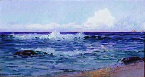 | Keywords: 'Mokulua Islands from Kailua Beach' by D. Howard Hitchcock, 1915.JPG Mokulua Islands from Kailua Beach by D Howard Hitchcock 1915 oil on canvas 14 x 25 inches Frazier Fine Art 1915 D Howard Hitchcock PD-old-auto 1943 Hawaii in paintings by D Howard Hitchcock Na Mokulua Kailua Beach |