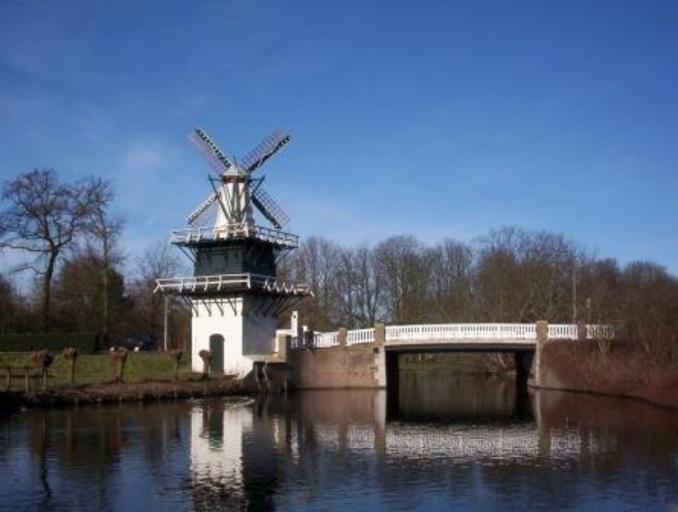 | Keywords: Molentje.jpg Windmill at East entrance of Groenendaal park in Heemstede The park is situated at the site of the former home of John Hope whose estate Bosbeek was the first example of a garden in the 'English Style' in the 18th century in the Netherlands He installed the first steam engine for garden use at the site of this windmill in 1781 which had an opposite purpose than most Dutch windmills He wanted to pump water <i>into</i> his estate to grow the unusual plants and trees he had cultivated in the dry sand Dutch windmills are normally used for pumping water <i>out</i> of places In circa 1850 the steam engine was broken down and the copper kettle sold for scrap Photo date January 2007 Source I took the picture from the other side of the Merlenvaart canal Groenendaalse Molen Heemstede Bosbeek Heemstede |