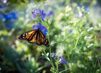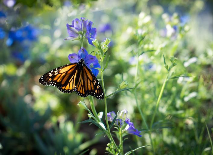 Keywords: monarch butterfly purple flower orange colorful garden insect pattern fly color bokeh