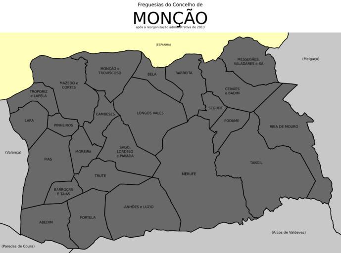 | Keywords: Monção freguesias 2013.svg pt Freguesias do concelho de Monção Fontes Diário da República Reorganização administrativa do território das freguesias Lei n º 11-A/2013 de 28 de janeiro Direcção-Geral do Território Carta Administrativa Oficial de Portugal CAOP versão 2013 Continente http //www dgterritorio pt/ficheiros/cadastro/caop/caop_download/caop_2013_0/caop2013cont_zip_2 en Civil parishes in the municipality of Monção Portugal Sources Diário da República Administrative reorganization of the civil parishes' territory Law n 11-A/2013 from 28th January Direcção-Geral do Território Official Administrative Chart of Portugal CAOP version 2013 Mainland http //www dgterritorio pt/ficheiros/cadastro/caop/caop_download/caop_2013_0/caop2013cont_zip_2 2014-04-04 01 40 55 own Gazilion cc-zero Uploaded with UploadWizard Monção SVG maps of freguesias in Portugal |