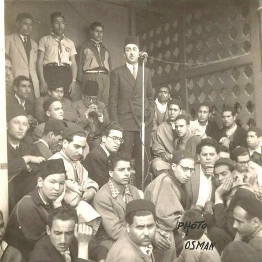 | Keywords: Mongi Slim 1950.jpg ar الزعيم المنجي سليم يخطب في إضراب الجوع الذي شنّه الطلبة الزيتونيون يومي 21 و22 أفريل 1950 ويبدو في الصورة جالسا على يمين الخطيب صالح بن يوسف وبجانبه عزوز الرباعي وعبد الكريم قمحة وأمامهما عبد العزيز العكرمي وعلى يمينه عبد الله بوبكر وعلى يسار الخطيب عمر شاشية وأمامه عبد الرحمان الهيلة 1950 facebook author other versions Custom license marker 2015 06 10 PD-Tunisia Uploaded with UploadWizard Mongi Slim | ||||