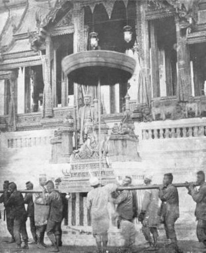 | Keywords: Mongkut and Chulalongkorn ceremony 1.jpg Photograph showing the investiture ceremony of Prince Chulalongkorn on the palanquin his father King Mongkut is standing in the pavillion Grand Palace Bangkok Siam http //palungjit com/attachment php attachmentid 548531 d 1238053301 1866 Creator John Thomson PD-Thailand Photos of Rama IV Ceremonies in Thailand Photos of Rama V Crowns of Thailand Photographs of Bangkok by John Thomson | ||||