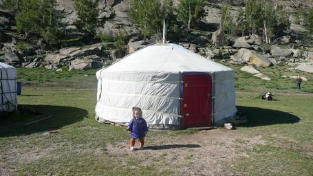 Keywords: Mongolia-Ger-2009-5.JPG en Yurt with cild in Gorkhi-Terelj National Park own Brücke-Osteuropa 2009-08-20 Yurts in Gorkhi-Terelj National Park