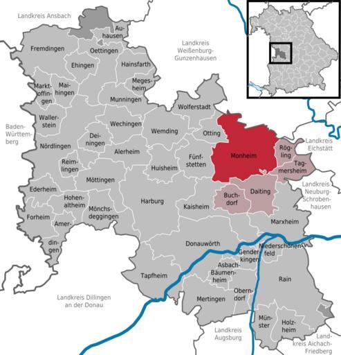 | Keywords: Monheim in DON.svg DeLocMaps Monheim Landkreis Donau-Ries District of Donau-Ries Donau-Ries L'arrondissement de Donau-Ries Arrondissement de Donau-Ries Bayern Bavière Bavaria Adobe Illustrator own based on File Municipalities_in_Bavaria svg by TUBS Bavaria_AM svg by TUBS 2010-04-03 TUBS TUBS/licensesection Attribution TUBS/Credits Locator maps of municipalities in Landkreis Donau-Ries Monheim Schwaben | ||||