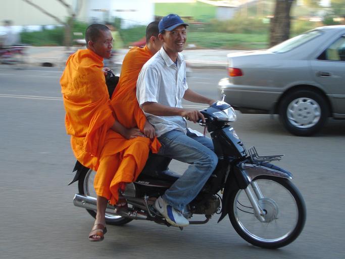 Keywords: monk religion monks buddhism transport motorcycle faithful moped cambodia
