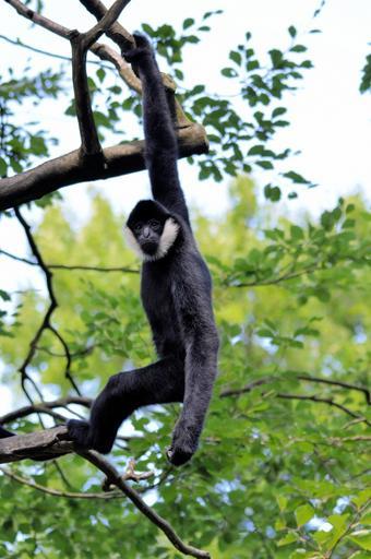 Keywords: monkey animal wildlife wild mammal primate tropical adorable hanging gibbon outdoor trees