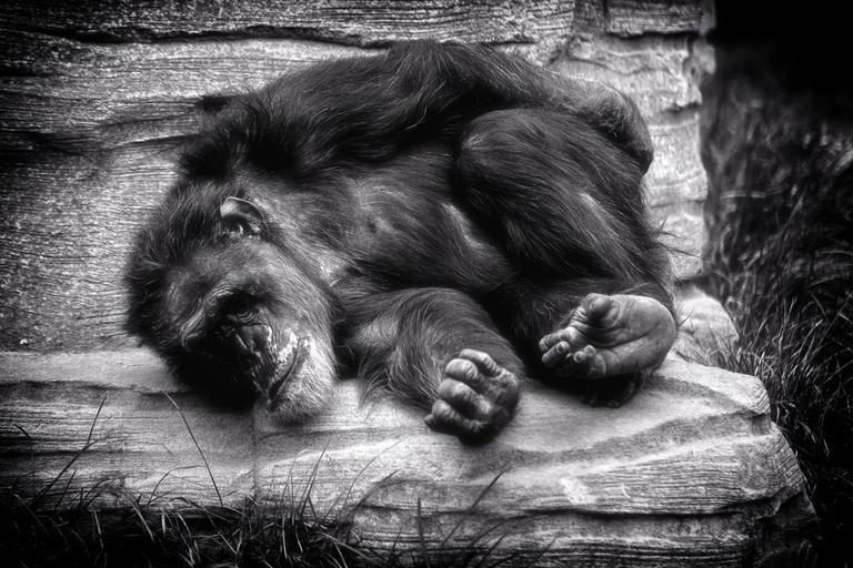 Keywords: monkey chimpanse rest relax africa black white zoo nature animal